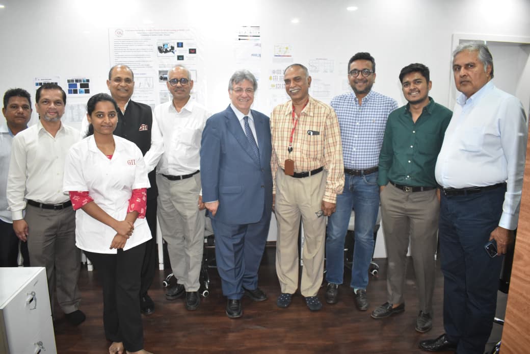 Dr. Gaetano Cavalieri, President, CIBJO visited On 24th March 2026 GII labs in G Tower, BDB. He was accompanied by Shri Anoop Mehta, President, BDB and former Chairman GII, Shri Mehul Shah, Vice President and Chairman, GII, Shri Jay Parikh Trustee, GII, Dr. A.V.R. Reddy, CEO, GII and others. Mr. Omkar, GII briefly explained methods and equipment used for testing diamonds. Shri Anoop Mehta told that GII has advanced equipment like 6 laser Raman spectrometer FTIR and XRF and a Kiosk.